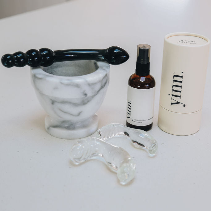 This kit includes our best selling glass prostate massager, organic lubricant by Yinn & the Medusa, black glass pleasure wand - ideal tools for exploring anal play and experiencing incredibly pleasurable orgasms or ejaculation.