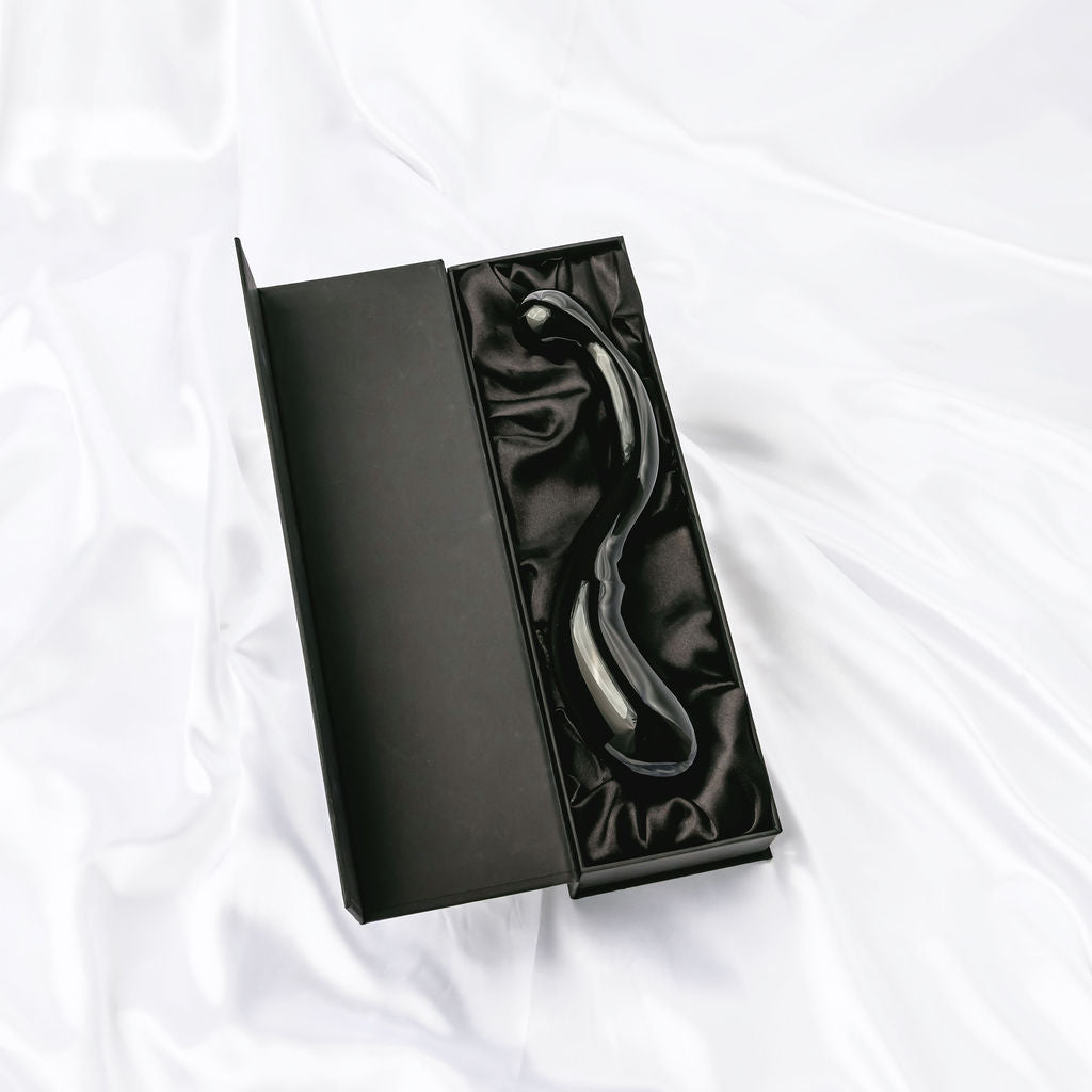 Smooth, weighted and curved for deep internal pleasure, this black obsidian wand is designed to meet the G-spot with steady, intentional pressure. One end is thicker, offering a fuller sensation. The other end tapers into a rounded bulb for more precise, targeted stimulation.