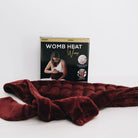 - The Womb Heat Wrap in Moon Blood Maroon colour and packaged in a box with instructions.