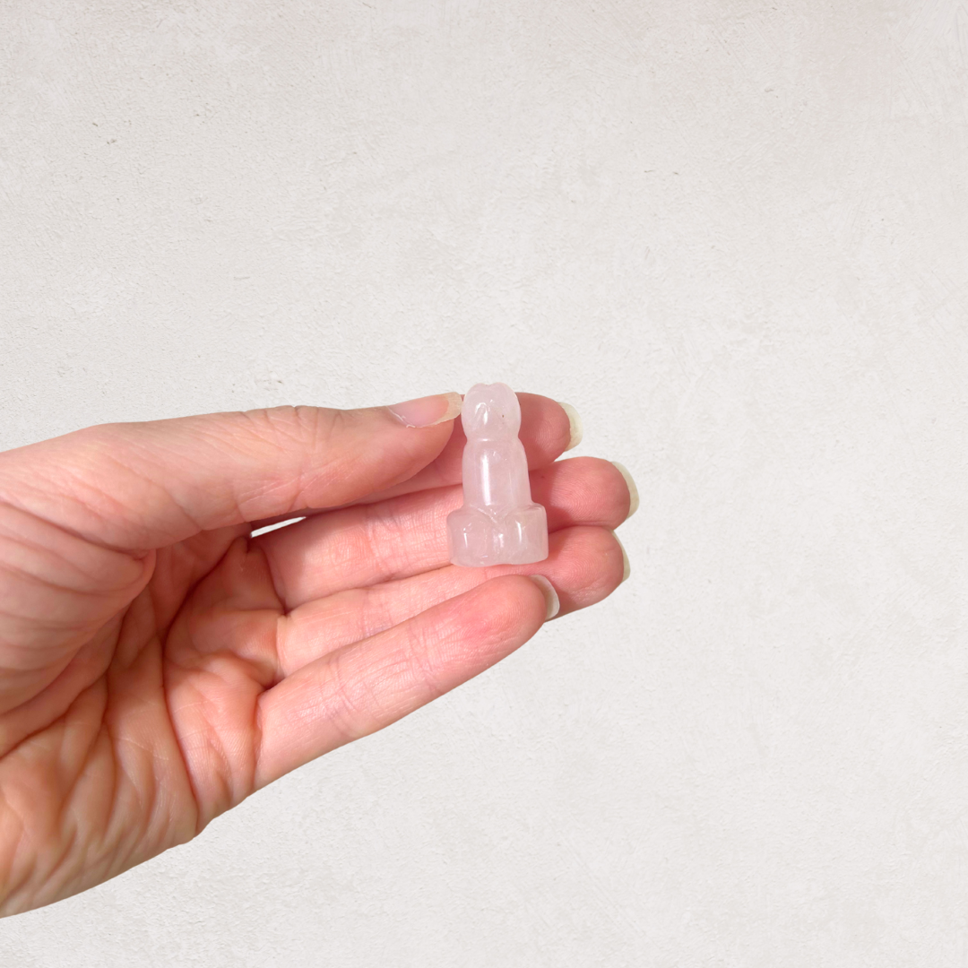 Cool, smooth crystal that warms quickly in the hand and is small enough to tuck anywhere. This is a grounding, sensual object with a playful twist.